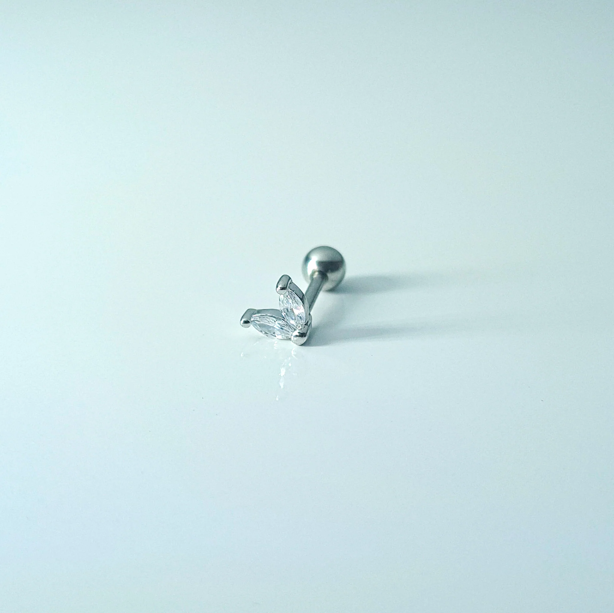 Marquise stone single piercing stud set with cubic zirconia. Sold as a single unit.